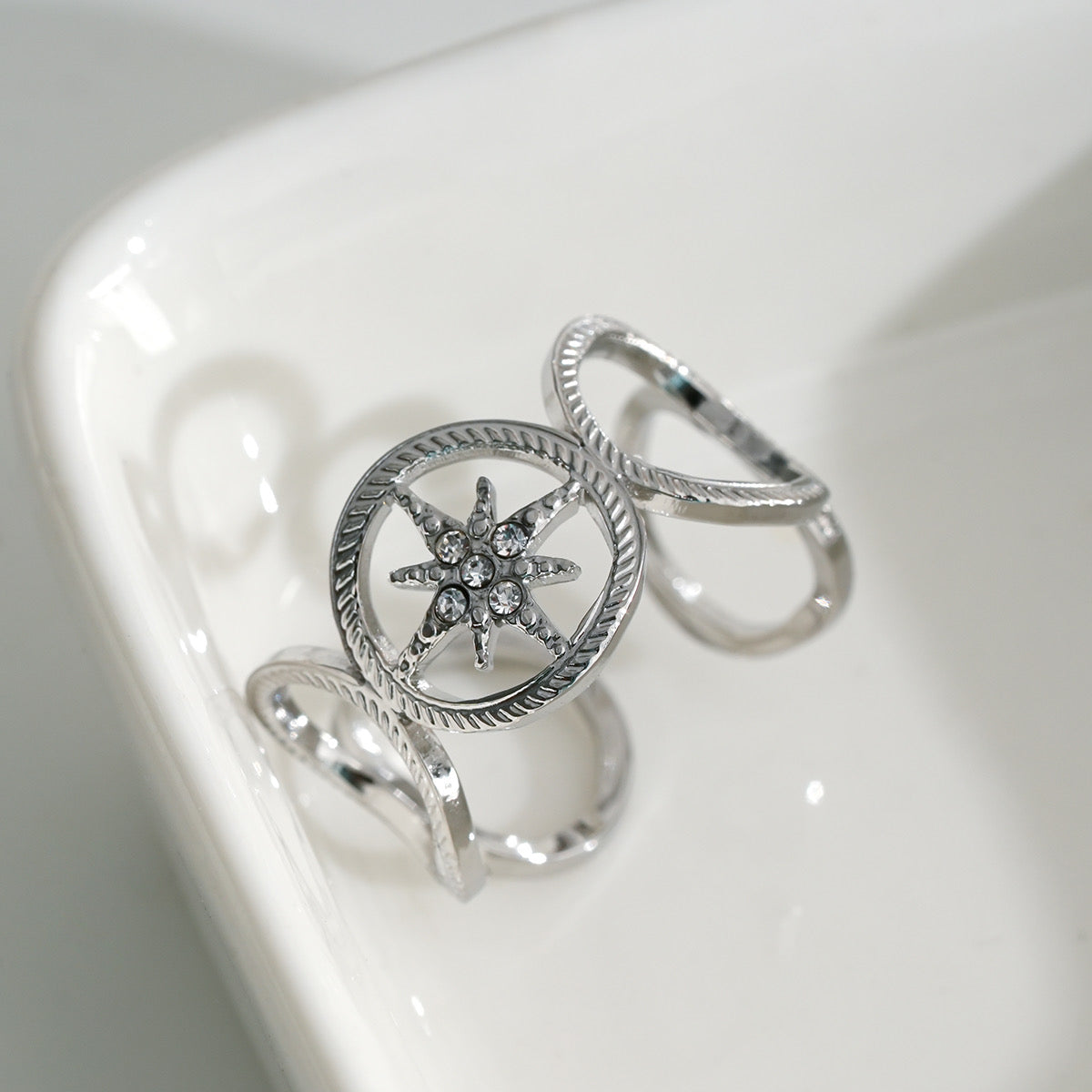 Bague Argentée Multi Cercle Avec Etoile Incrustée de Strass