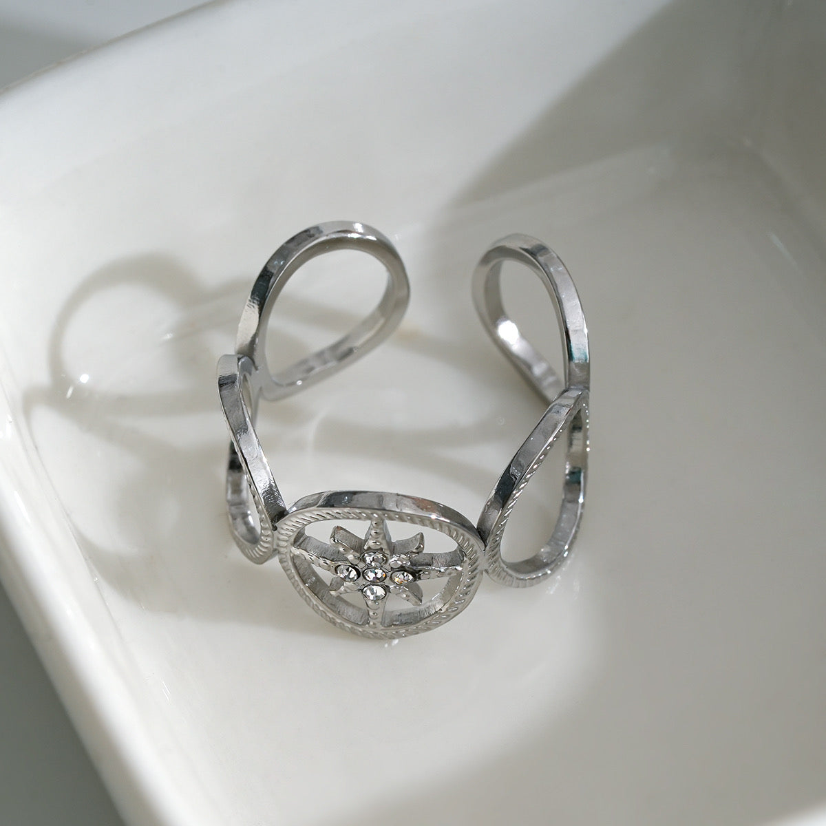 Bague Argentée Multi Cercle Avec Etoile Incrustée de Strass. Tous nos produits sont fabriqués en acier inoxydable, un matériel qui résiste à l'eau et au temps.