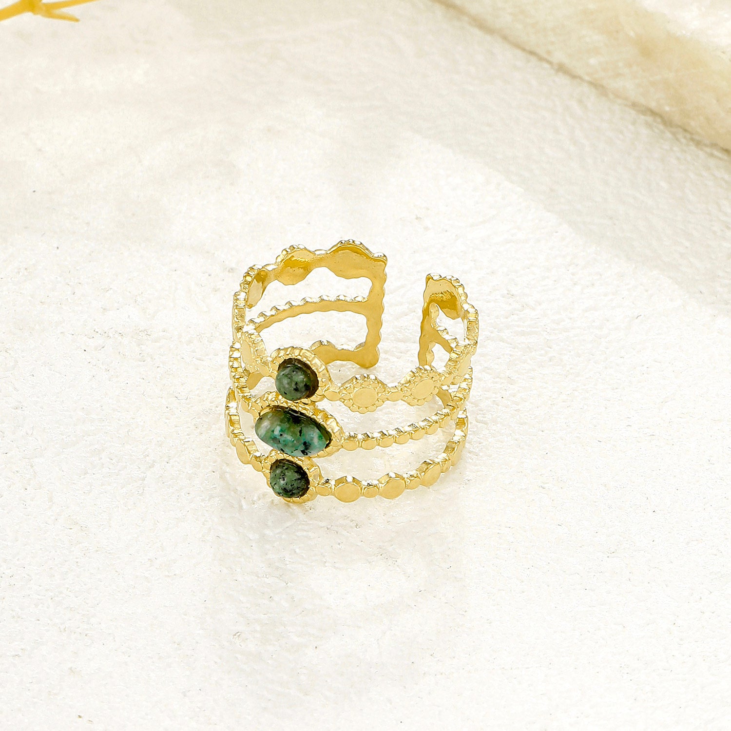 Bague Dorée Ajustable Triple Avec Pierres Vertes Turquoise africaine