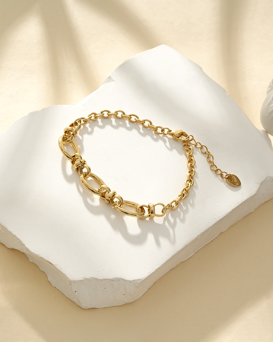 Bracelet Doré Avec Large Maillons Et Nœuds
