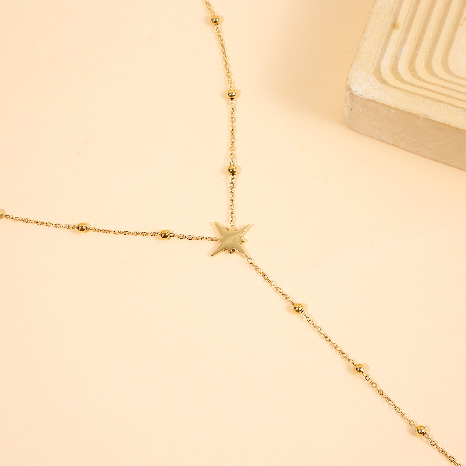 Collier Chaîne Y Dorée Étoile Scintillante Avec Strass Et Perles