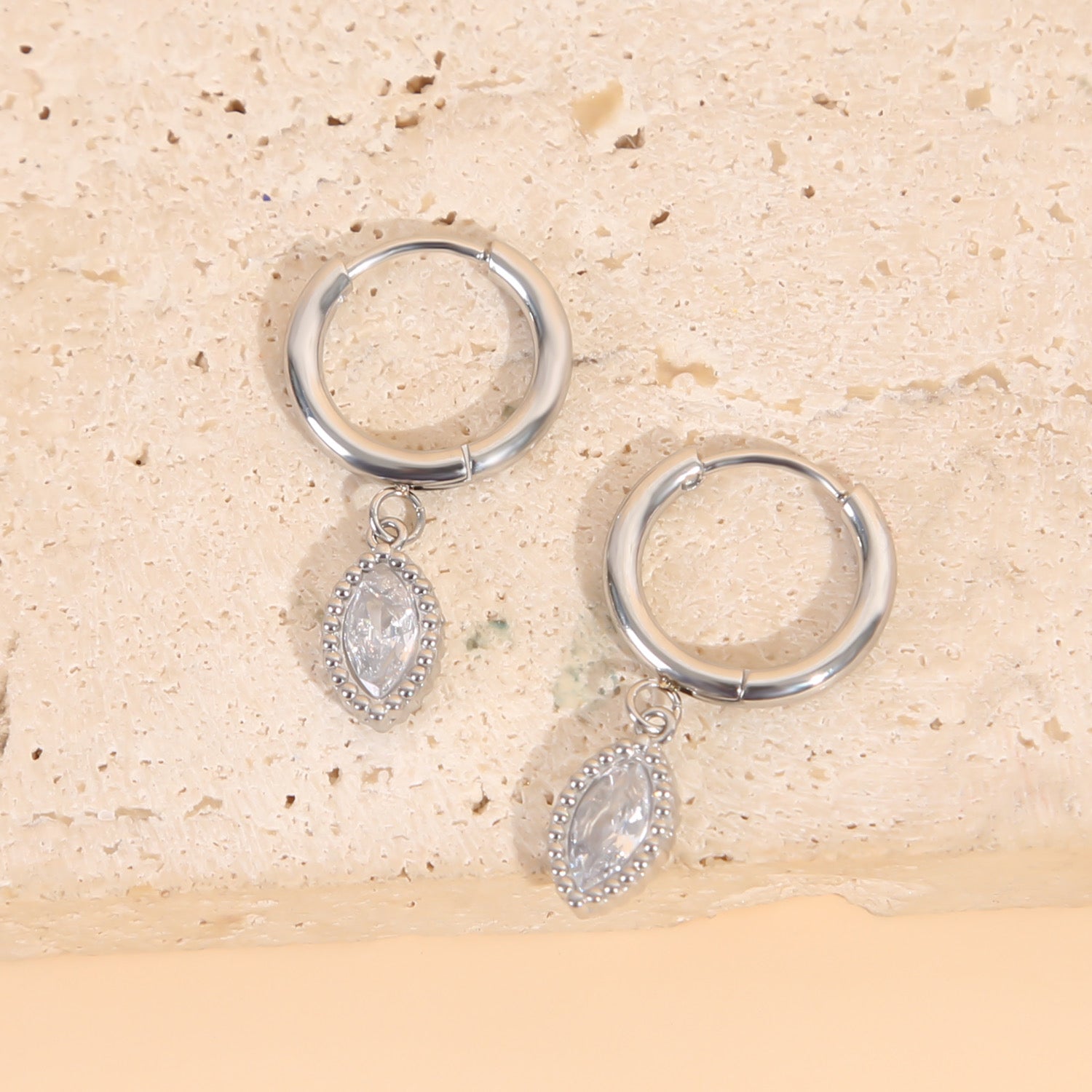 Créoles Argentées Goutte De Lumière En Zircon. Tous nos produits sont fabriqués en acier inoxydable, un matériel qui résiste à l'eau et au temps.