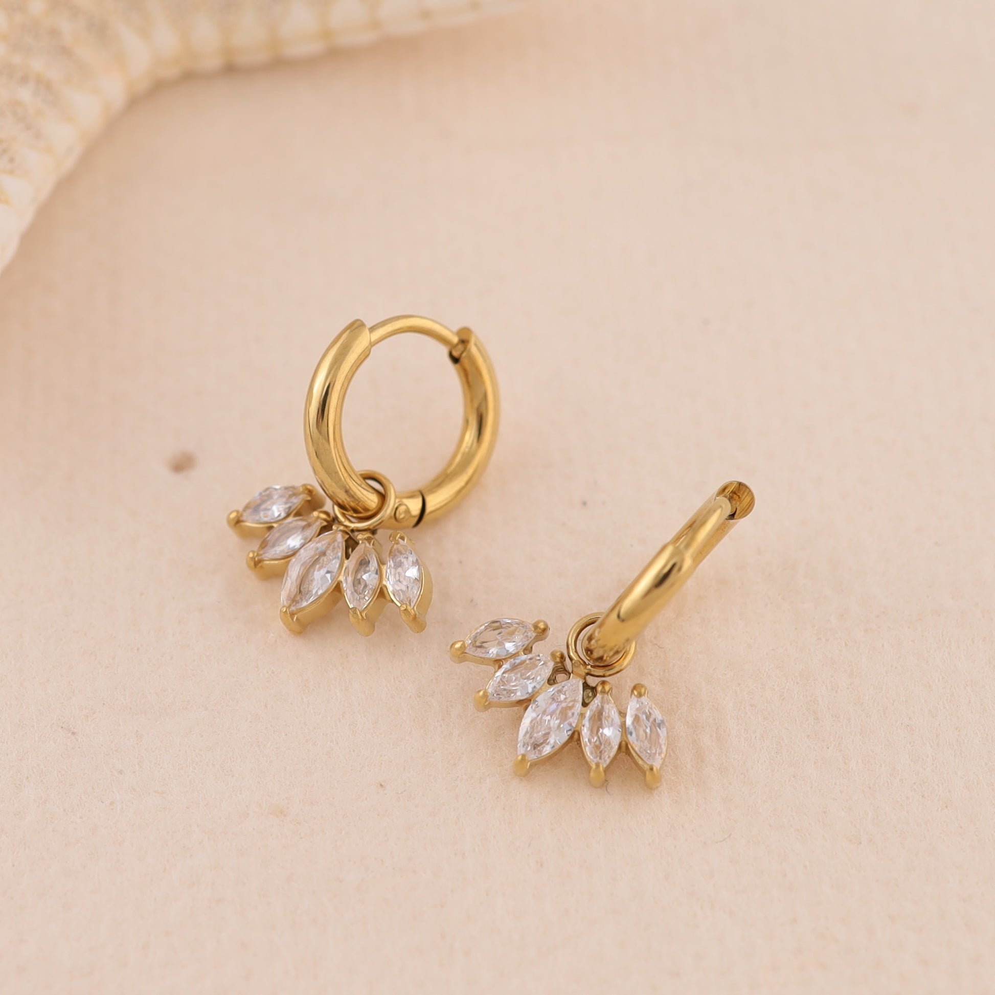 Créoles Dorées Pétales Scintillants Zirconium. Tous nos produits sont fabriqués en acier inoxydable, un matériel qui résiste à l'eau et ne se rouille pas dans le temps. Ils sont garantis sans nickel, sans cadmium et sans plomb.